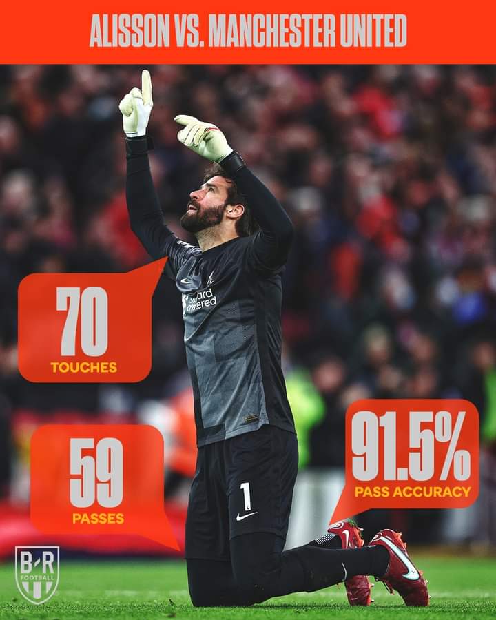 Not a single Manchester United player had more touches, passes, or a higher pass percentage than Alisson