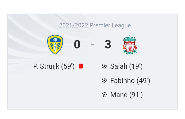 Game is over and the final score is Leeds United 0-3 Liverpool. Here is the match report.