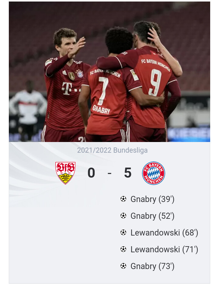 Game is over and the final score is Stuttgart 0- 5 Bayern. Here is the match report.