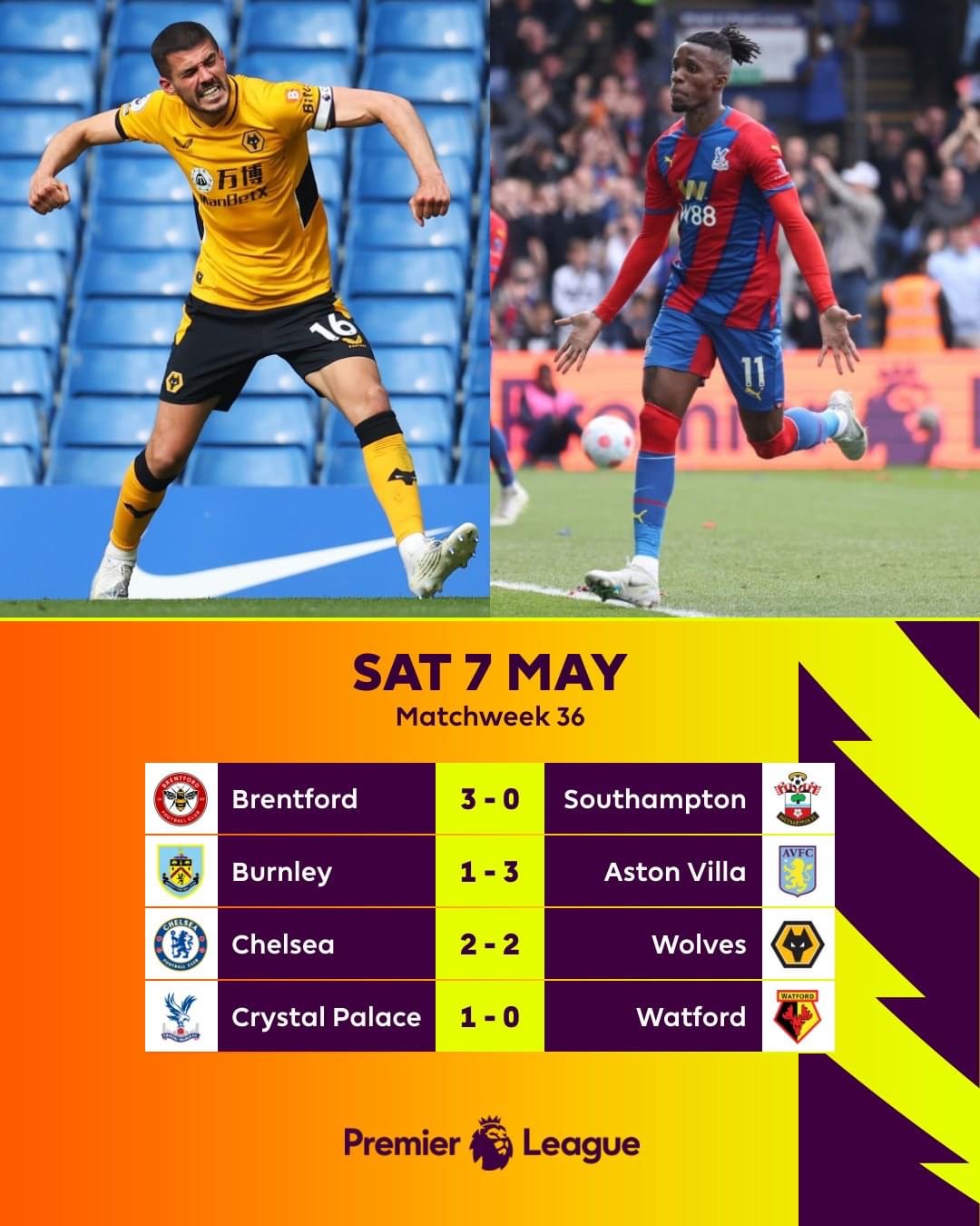 Wolves score in the last minute to draw at Chelsea, while Watford are relegated after Wilfried Zaha’s penalty