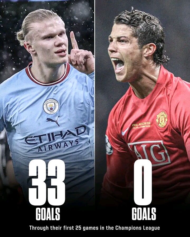 No player has scored more goals (33) than Erling Haaland in their first 25 Champions League matches.