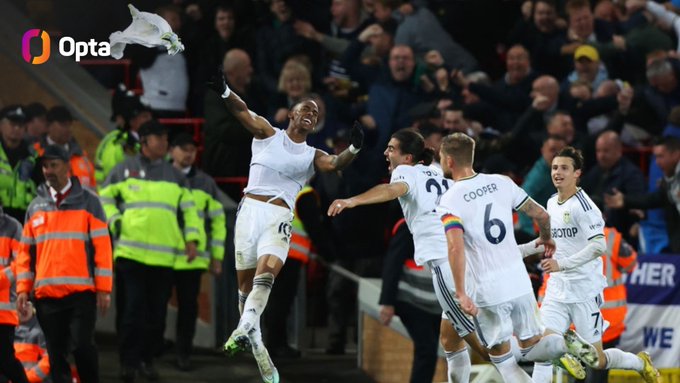 2012 - Crysencio Summerville’s 89th minute winner for Leeds was the latest winning goal scored against Liverpool at Anfield in the Premier League since Robin van Persie’s 90th minute strike for Arsenal in March 2012. Cautioned.