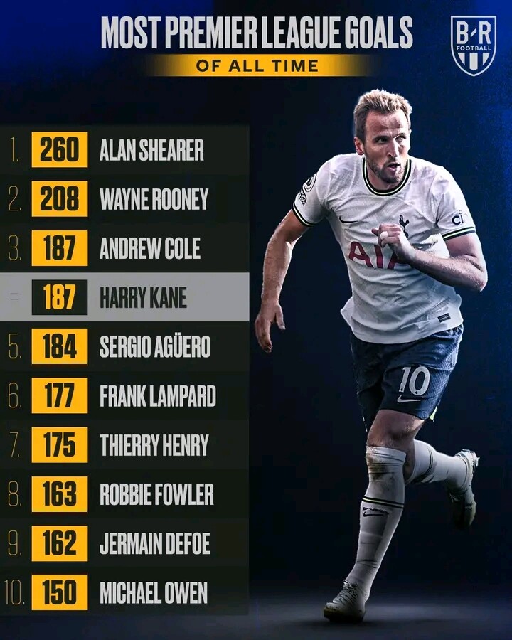 With his two goals vs. Nottingham Forest, Harry Kane moved into the top 3 all-time Premier League scorers