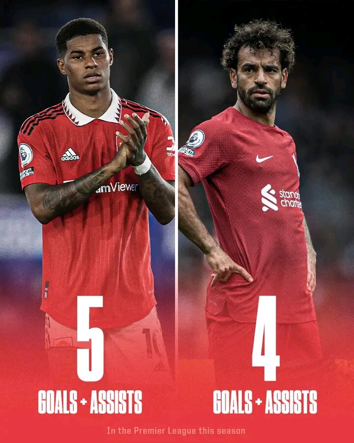 Marcus Rashford has more goal involvements than Mo Salah in the Premier League so far this season