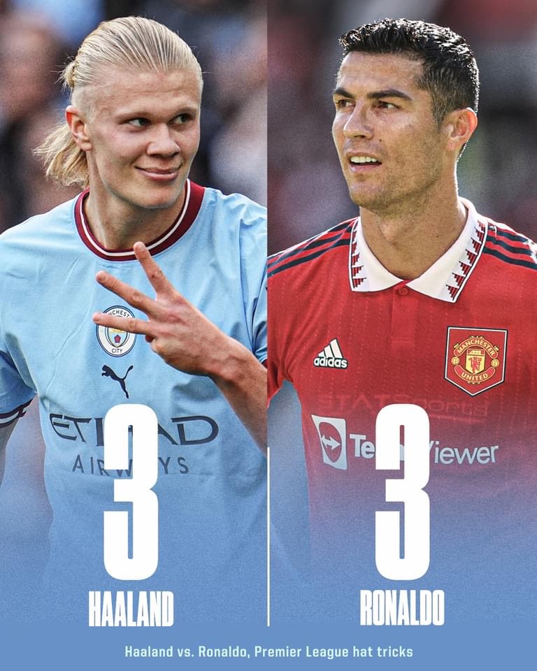 Erling Haaland has now scored as many hat-tricks as Cristiano Ronaldo in the Premier League (3).