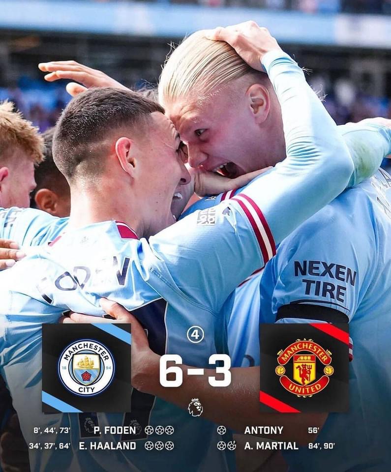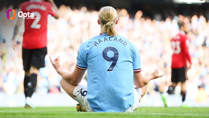 5 - Erling Haaland had a hand in five of Manchester City’s six goals against Manchester United today (3 goals, 2 assists), the most goal involvements by a player in a single Premier League Manchester derby. Sensational.