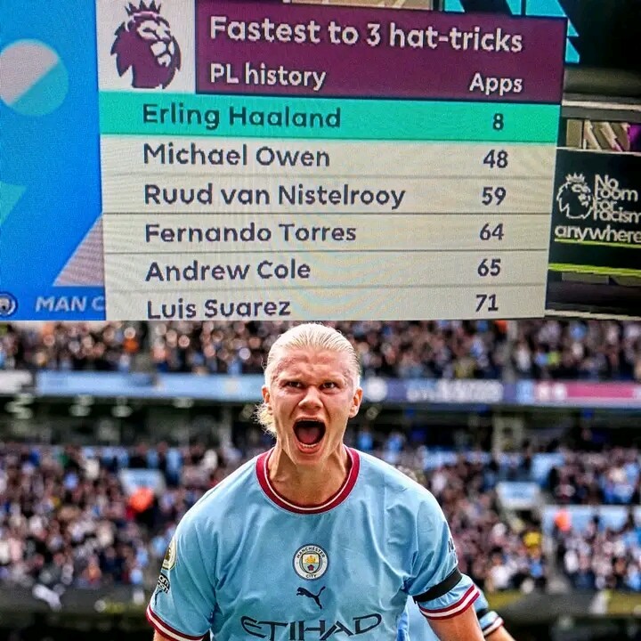 Erling Haaland and Cristiano Ronaldo have the same number of Premier League hat-tricks (3)