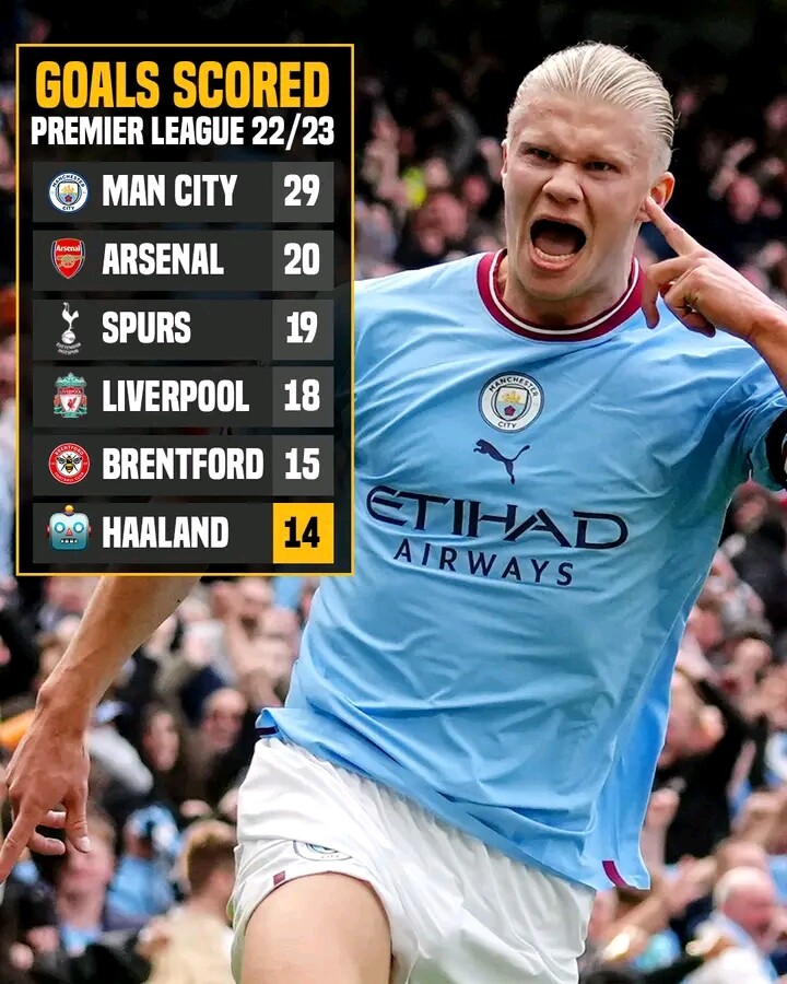 Erling Haaland has outscored 14 of the 20 teams in the Premier League this season