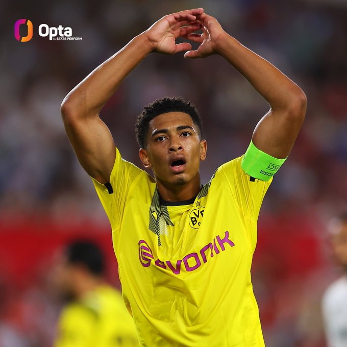 3 - Jude Bellingham has become the first midfielder in UEFA Champions League history to score in three consecutive appearances while still a teenager. Prodigy.