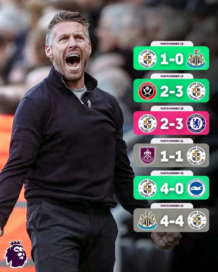 Luton in Matchweeks 18-23: 11 points