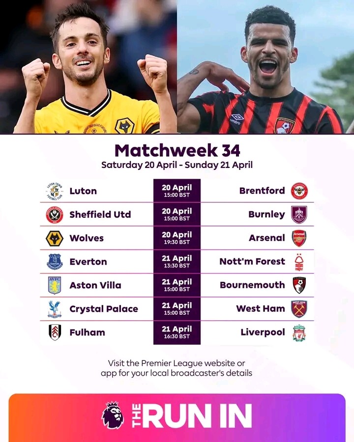 Get ready for the first part of Matchweek 34!