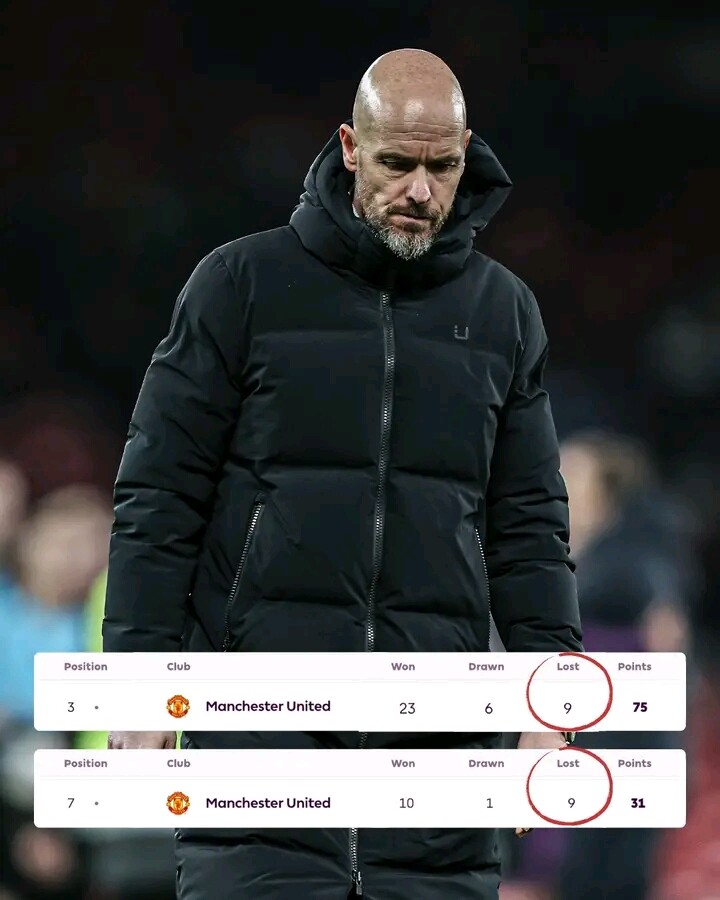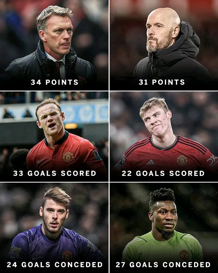 Erik ten Hag’s Man United are in seventh place in the Premier League this season after 20 games, the same position as David Moyes’ 2013-14 United team through the same number of games.