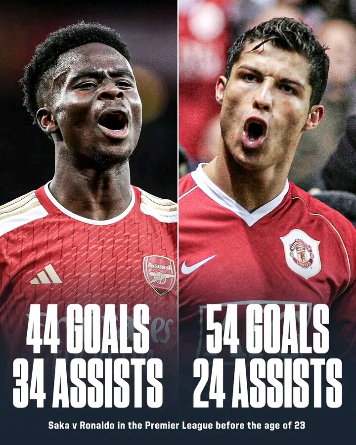 Bukayo Saka and Cristiano Ronaldo both reached 78 goal contributions in the Premier League before the age of 23.