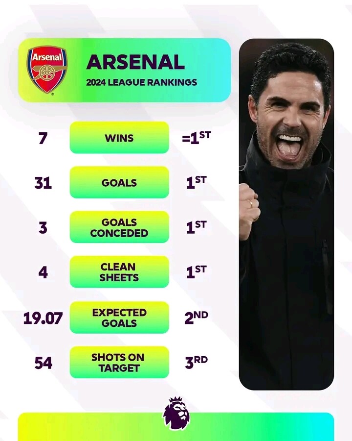 7 - Of the 24 Premier League Manager of the Month awards since the start of 2021-22, Mikel Arteta has now won 7 (29%) - more than double any other manager in this time. Arteta’s Arsenal won all four of their league games in February by an aggregate score of 18-2. Heaven.