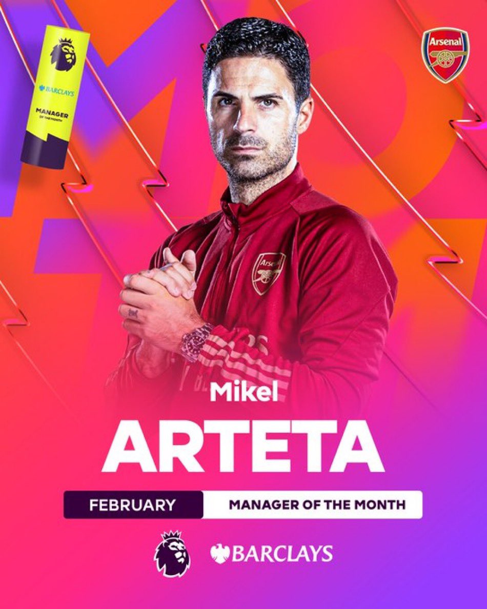 Mikel Arteta is February’s Premier League Manager of the Month, winning the award for a seventh time ![]()