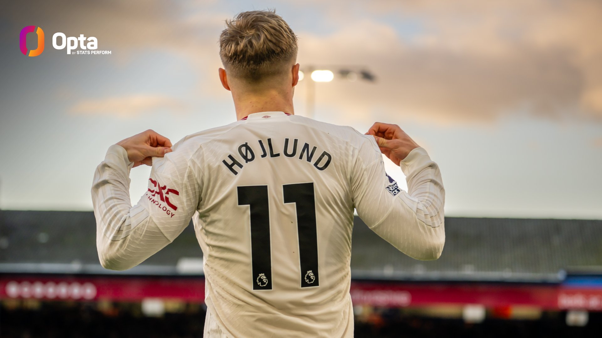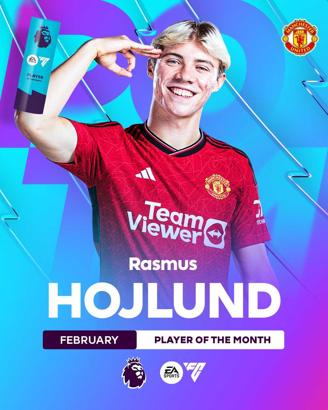 5 - Rasmus Højlund scored five goals in four Premier League appearances in February, converting 56% of his shots at goal (5/9), the best conversion rate of any player to attempt 3+ shots in February. Award.