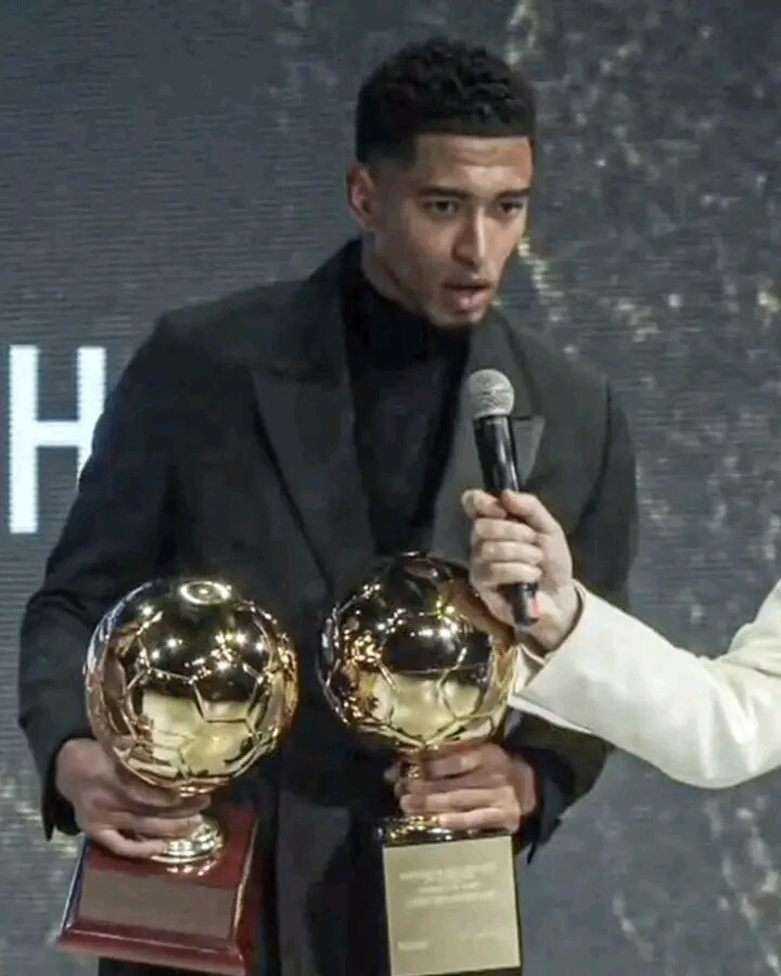 Jude Bellingham with his parents after winning the Golden Boy award ![]()