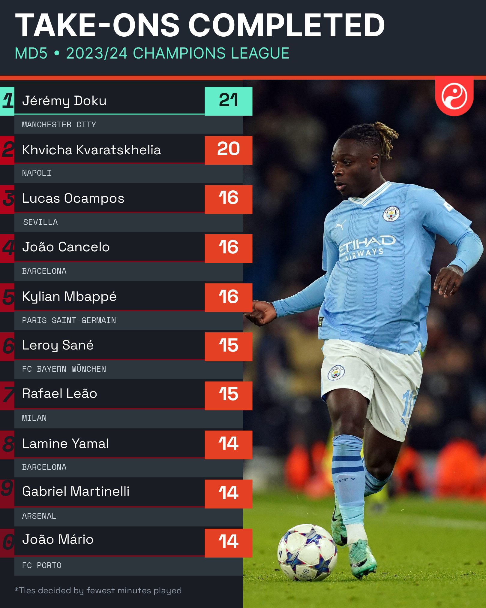 Jérémy Doku is the Dribble King. ![]()