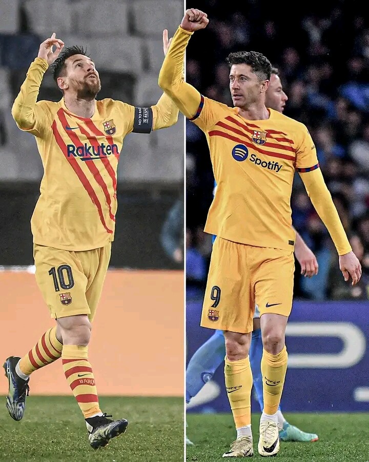 Robert Lewandowski is the first Barcelona player to score a Champions League knockout-stage goal since Lionel Messi in March 2021 ![]()