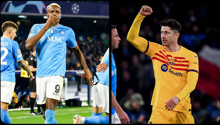 Robert Lewandowski scores Barcelona’s first Champions League knockout goal in 1,078 days.