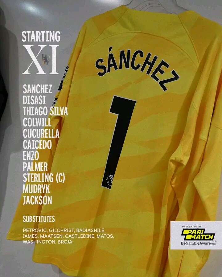 Chelsea XI: Sánchez; Disasi, Silva, Colwill, Cucurella; Enzo, Caicedo; Mudryk, Palmer, Sterling; Jackson.