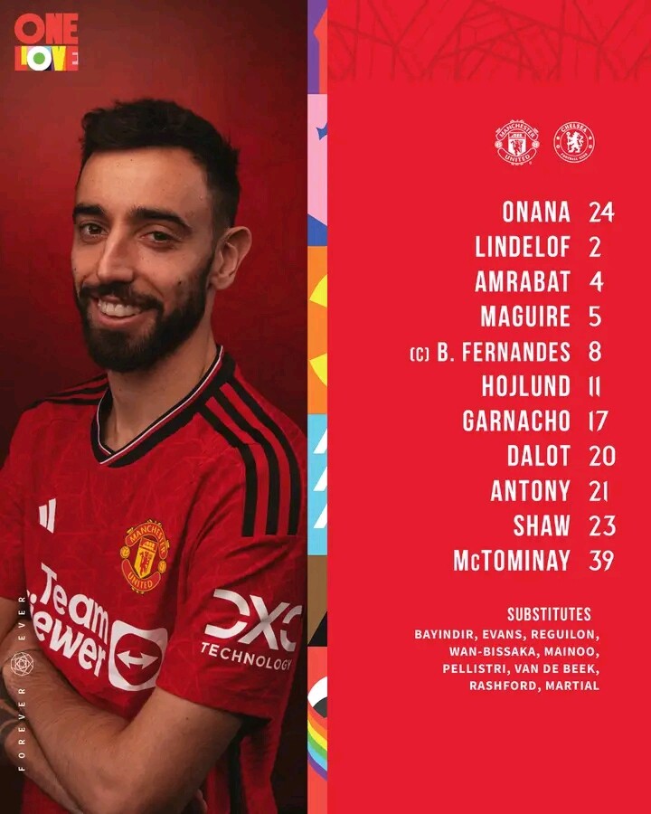 Man Utd XI: Onana; Dalot, Maguire, Lindelöf, Shaw; Amrabat, McTominay; Antony, Fernandes, Garnacho; Højlund.