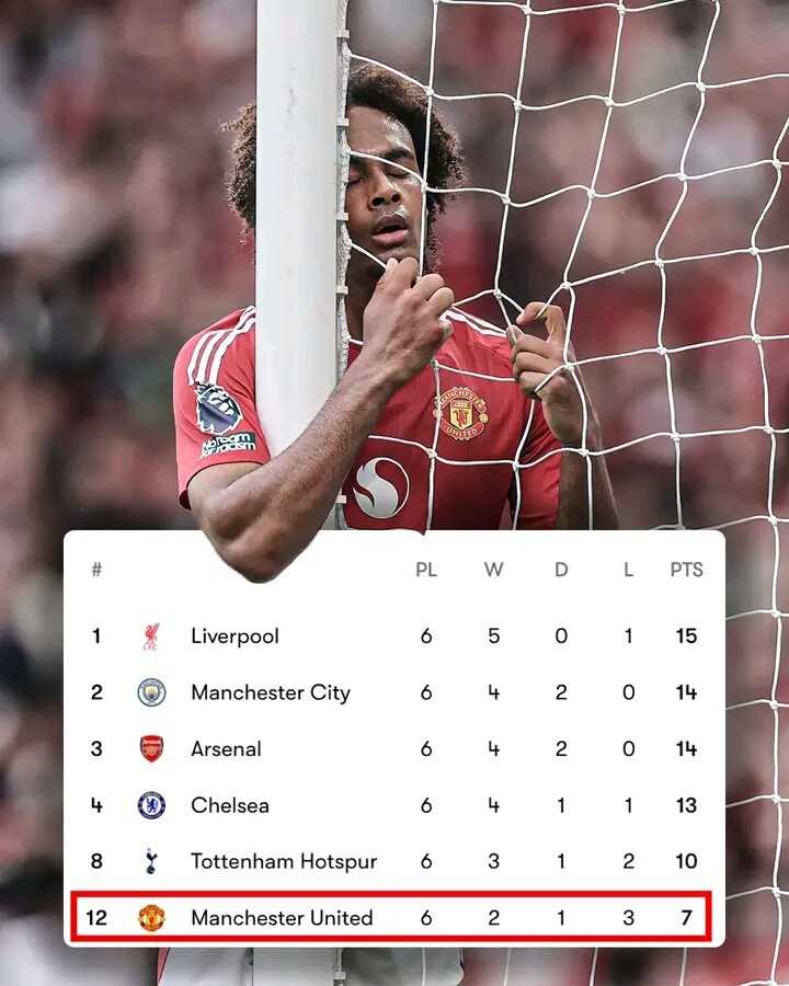 Manchester United are the only club from the Premier League’s ‘big six’ not in double digits for points this season ![]()