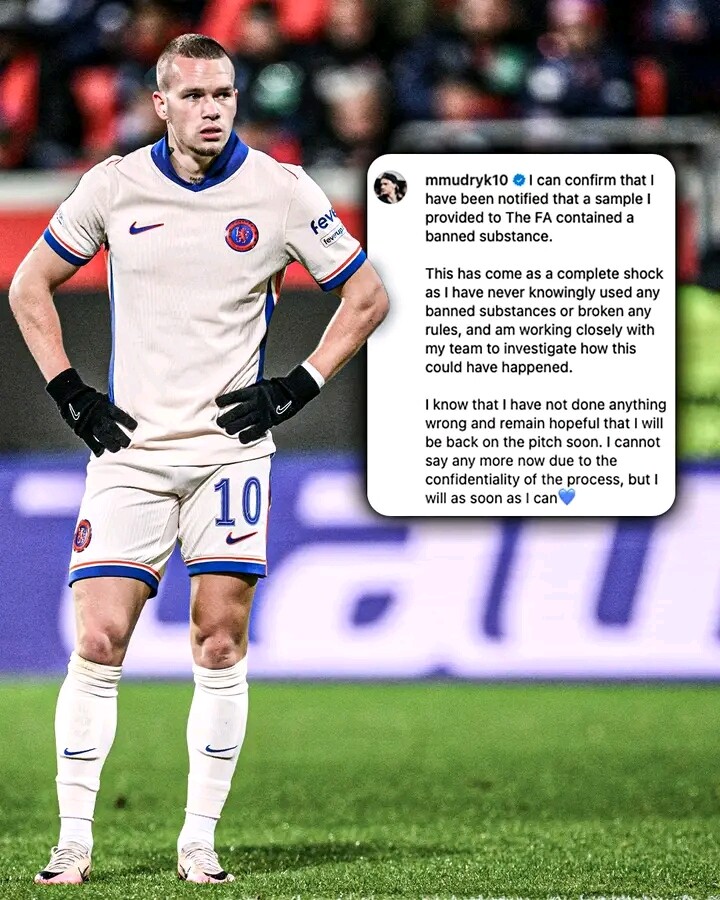 Mykhailo Mudryk issued a statement after Chelsea confirmed an “adverse finding” in his FA anti-doping urine test.