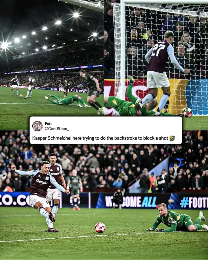 Kasper Schmeichel pulled out his best swimming moves trying to stop Morgan Rogers from sealing his Champions League hattrick ![]()