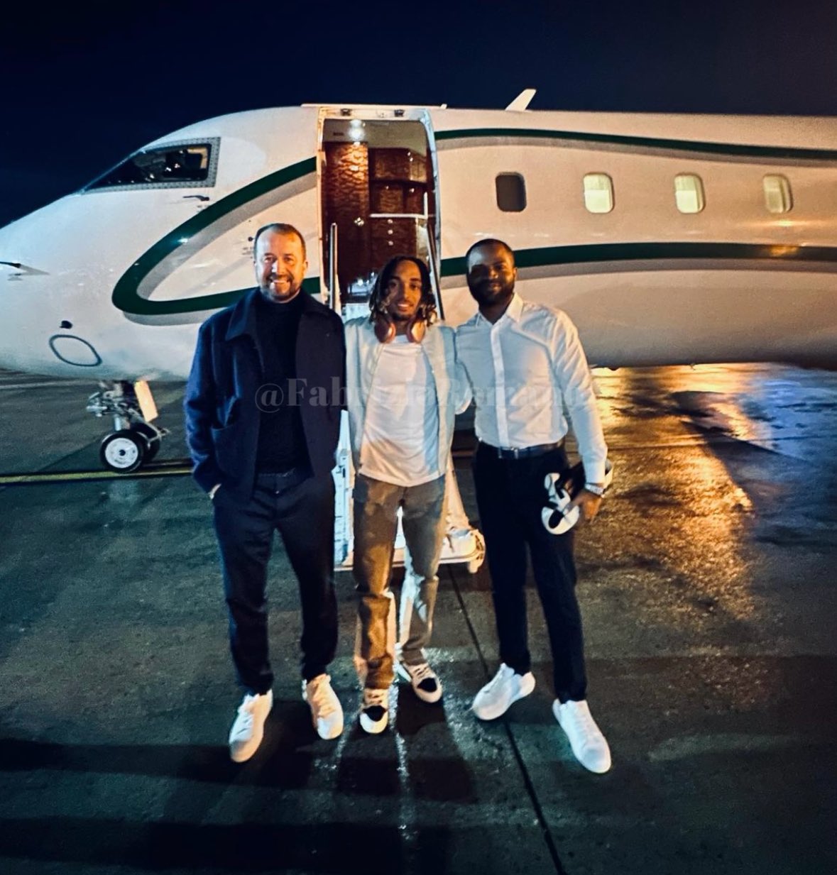 Sacha Boey has landed in Munich to complete his move to Bayern. Here’s the player together with his representatives. ![]()
