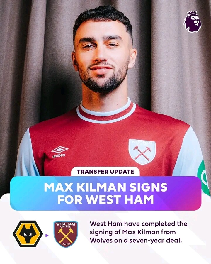 ๐๐๐๐ ๐๐ข๐ก๐: West Ham have signed Max Kilman from Wolves for ยฃ40m. ![]()