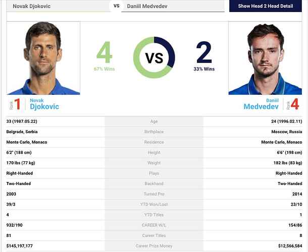 The players have a lot in common. Born 10 months apart, they’re both right-handers with two-handed backhands who stand 6’6” (198 cm) and live in Monaco. Both have Russian parents, Sascha’s from Sochi, Daniil’s from Moscow, and root for the Bayern Munich football club.