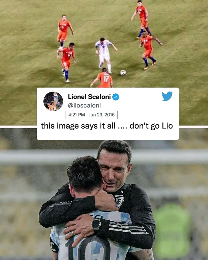 Lionel Scaloni tweeted this image when Messi retired from international football after losing to Chile in the Copa America final.