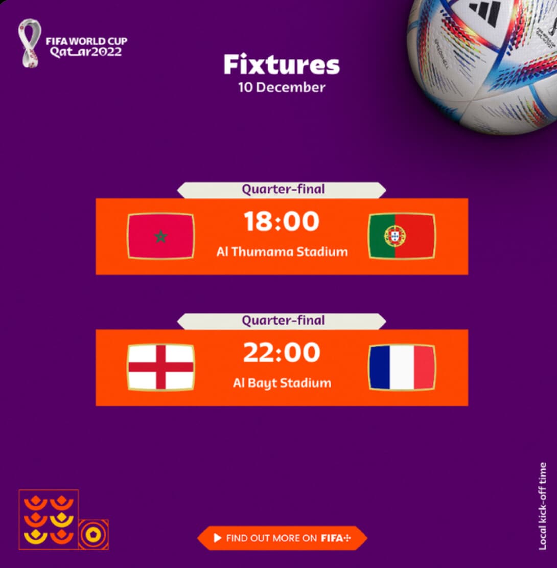Morocco and Portugal will meet for the third time, with the other two meetings taking place at the World Cup itself. Morocco won the first (3-1) in a group stage match in 1986, before Portugal prevailed 1-0 in the 2018 tournament, again in a group.