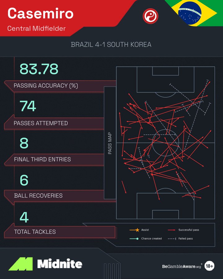 Casemiro’s game by numbers vs. South Korea: