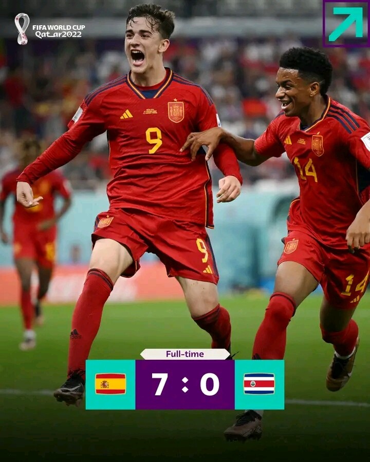 Spain have scored 7 goals in a World Cup match for the first time — their biggest win since their 6-1 victory over Bulgaria in 1998.