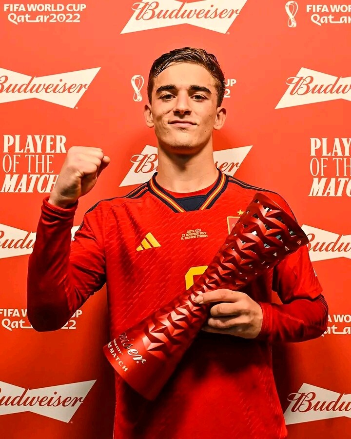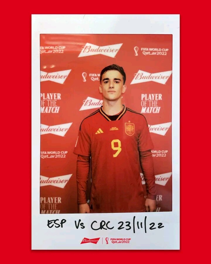 The youngest #FIFAWorldCup scorer since Pelé in 1958. Gavi is the Budweiser Player of the Match! ![]()
