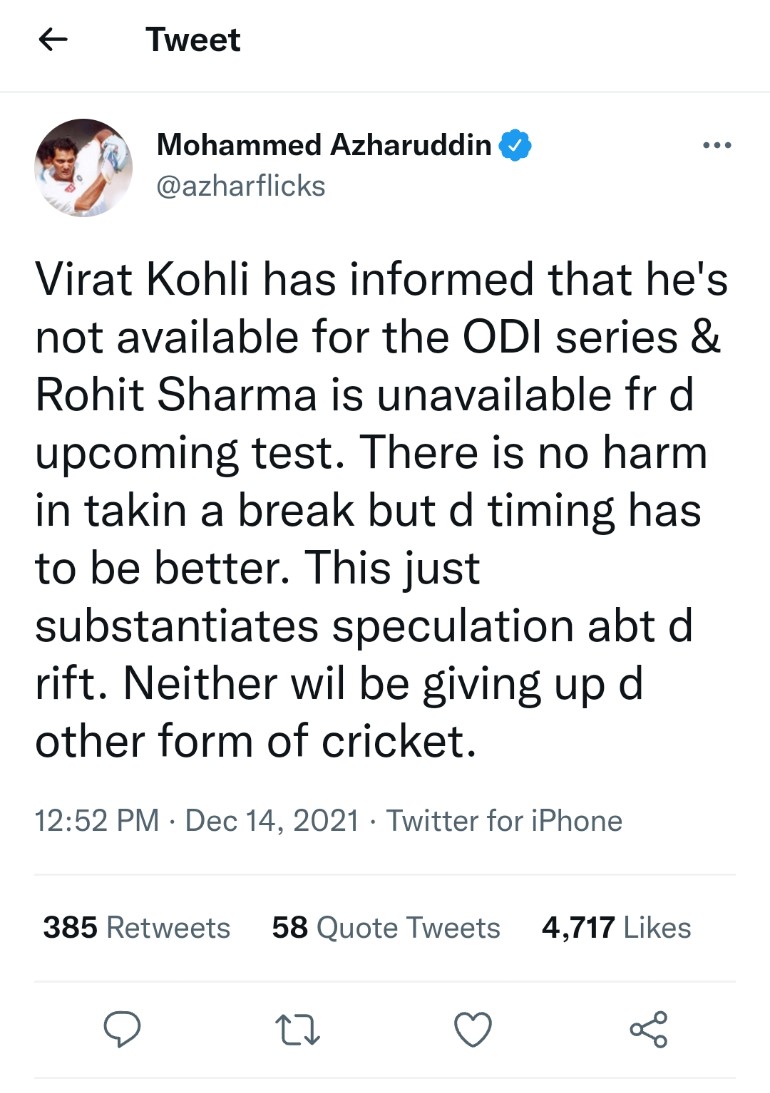 ODI skipper Rohit Sharma injured, to skip Tests in South Africa;