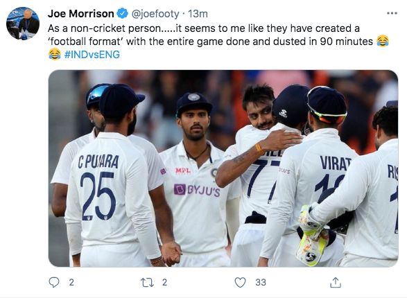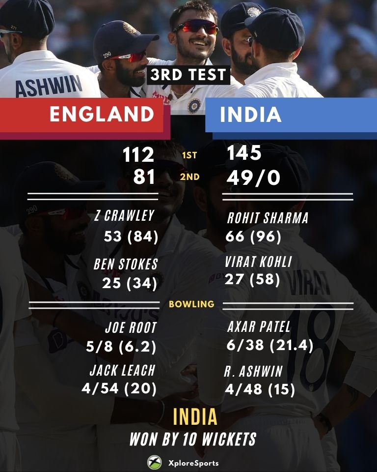 Earlier on Day 2, India posted a first innings score of 145 in response to England’s 112, taking a lead of 33 runs. India began Day 2 on a poor note, losing quick wickets. For ENG, Joe Root was in top form, registering five wickets. He took the wickets of Rishabh Pant, Washington Sundar, Patel, Ravichandran Ashwin and Jasprit Bumrah. Meanwhile, Jack Leach dismissed Rohit Sharma and Ajinkya Rahane.