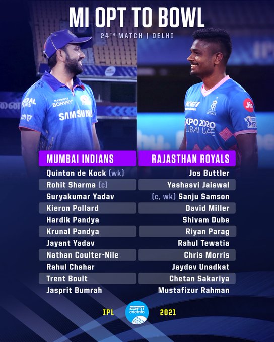 Rohit wins toss, Mumbai opts to field and Rajasthan to bat first.