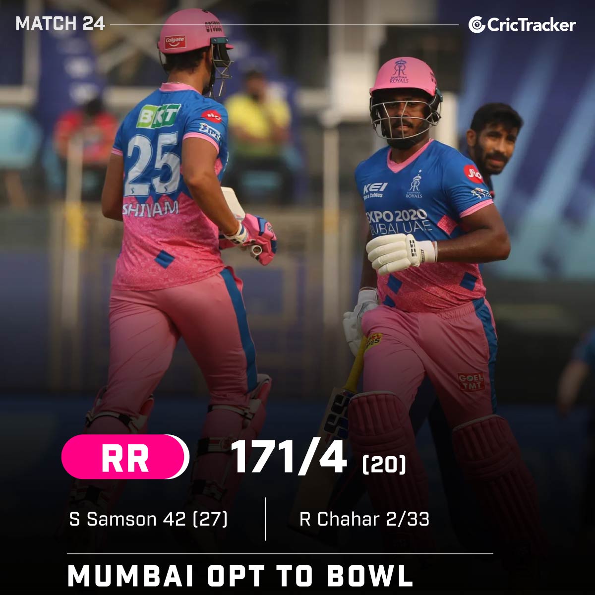 Innings Break: It has been an eventful finish and RR score 171-4 from their 20 overs. Yesterday, SRH too had got 171 while batting first in Delhi.
