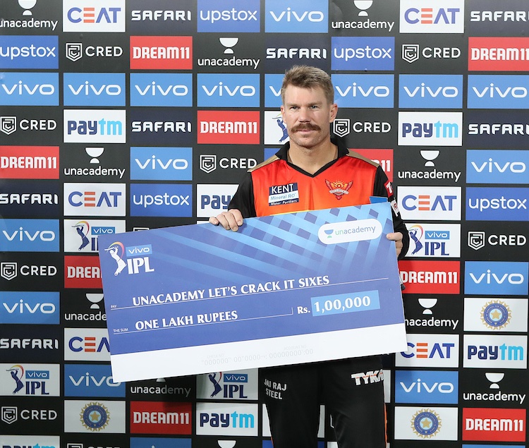 Unacademy Lets Crack It Sixes of the Match award goes to David Warner.