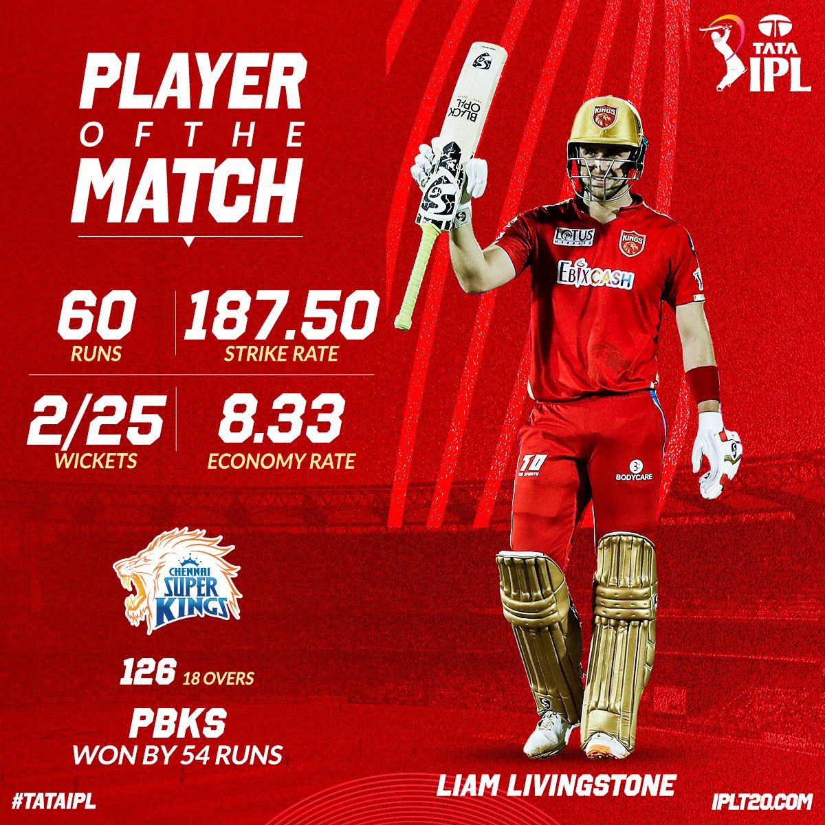 Livingstone stole the show with bat & ball and bagged the Player of the Match award as Punjab Kings secured a win over CSK.