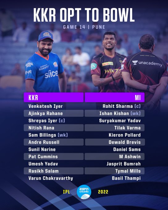 KKR have won the toss and they will bowl first against MumbaiIndians