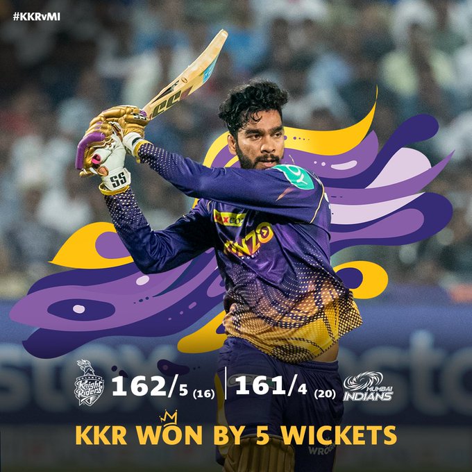 Kolkata beat Mumbai by five wickets! ![]()