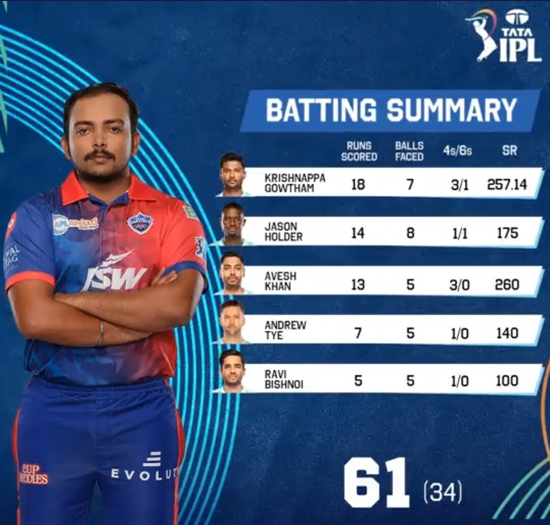 Best performer from the first innings is Prithvi Shaw for his brilliant knock of 61 off 34 deliveries.