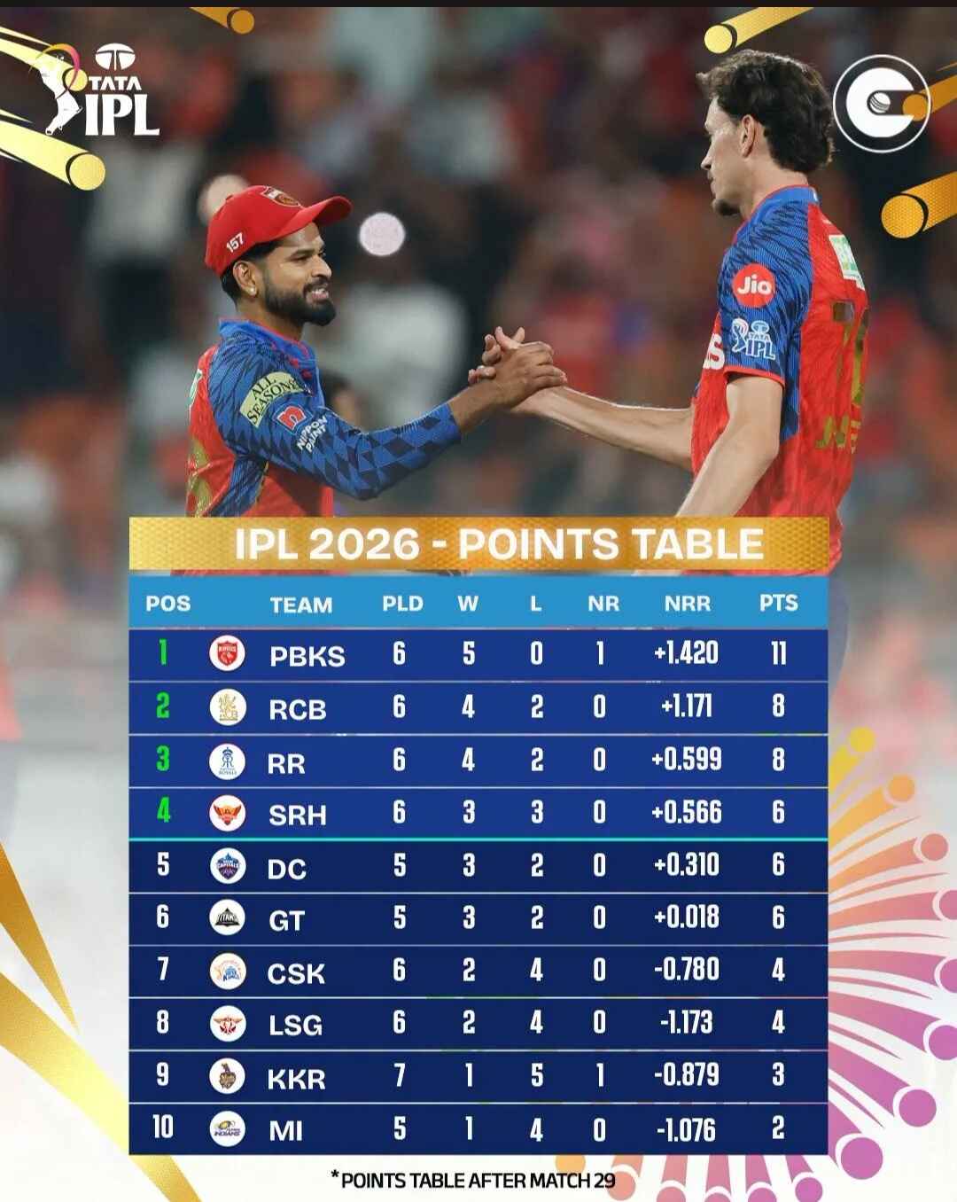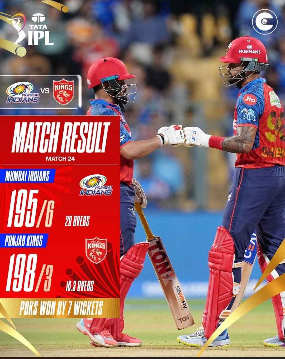 Punjab Kings maintained their lead at the top of the points table with another dominant victory in New Chandigarh. In contrast, Lucknow Super Giants dropped to the eighth position.