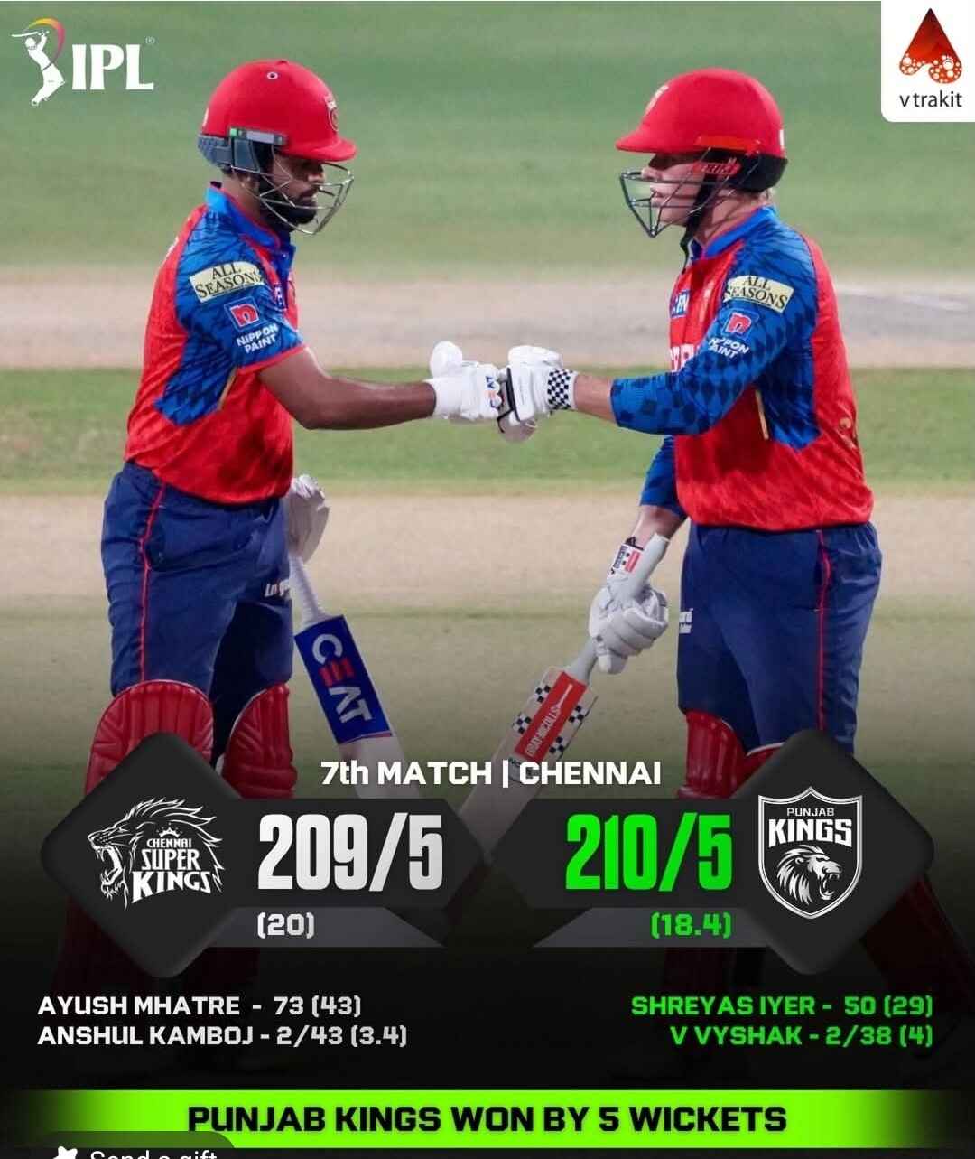 Back-to-back wins for Punjab Kings as they thrash CSK at home, chasing down 210 in just 18.4 overs! ![]()