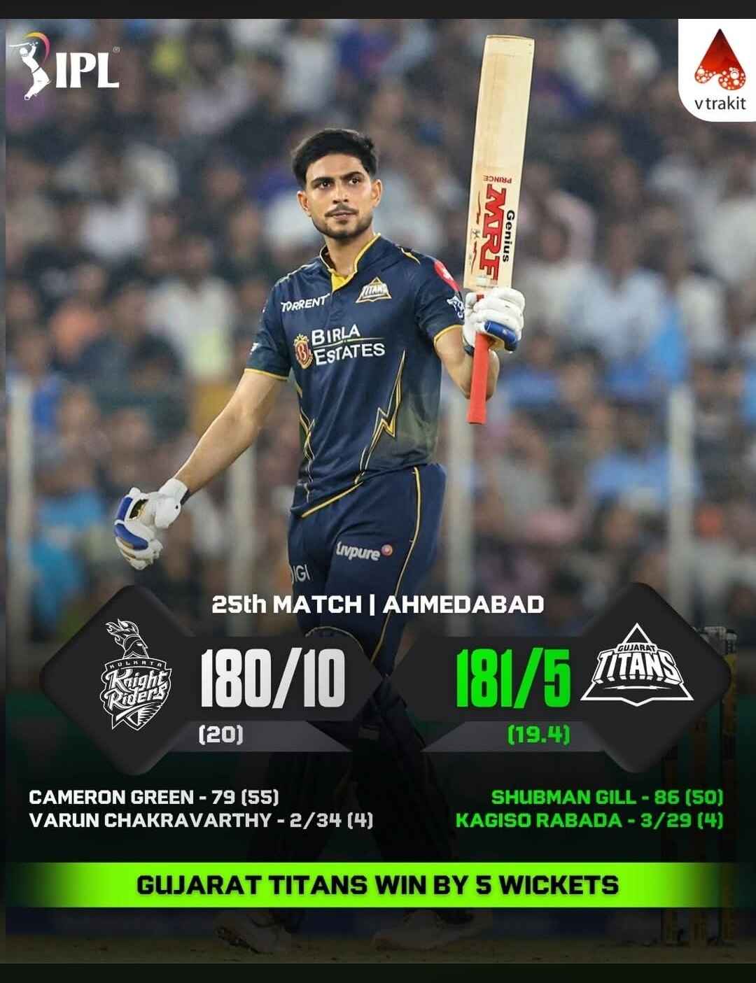 Gujarat Titans cruise to a 5-wicket victory against Kolkata Knight Riders ![]()