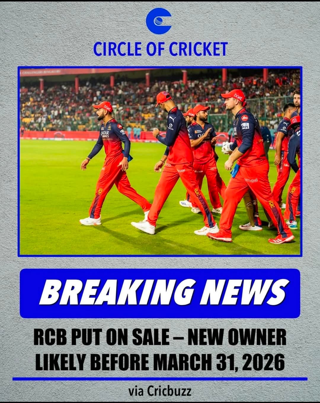 RCB has officially been put up for sale. As per the franchiseโs disclosure, Diageo, the owner of the IPL and WPL teams, has already commenced the sale process and is optimistic about completing it by March 31, 2026.